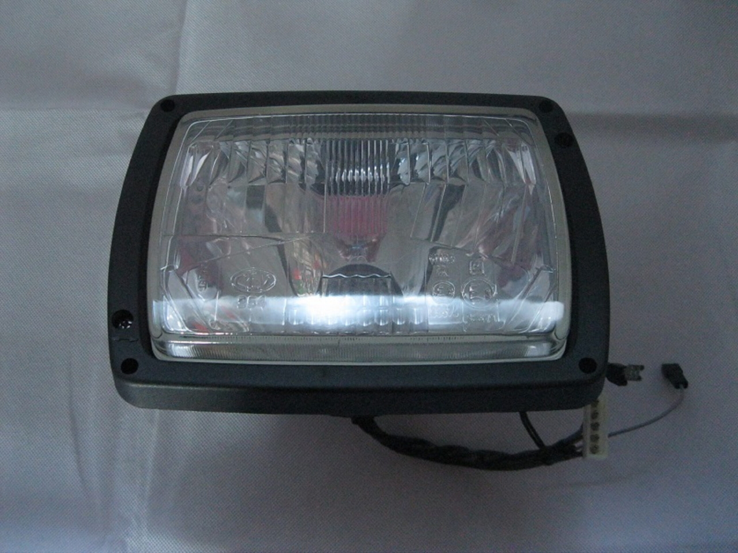 Faro anteriore completo di cornice , con portalampada per lampada biluce e posizione
